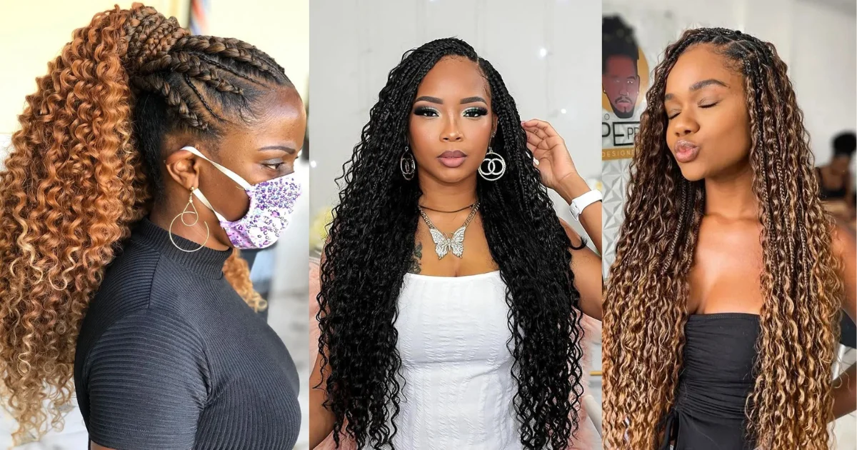 Bohemian (boho) braids usually have fewer curly pieces and a lighter, more effortless finish, while goddess braids feature both the braid and visible curly strands woven in for a fuller, bolder look.